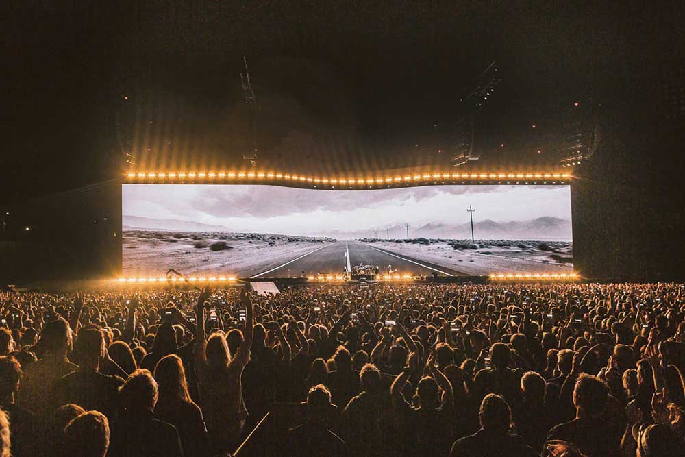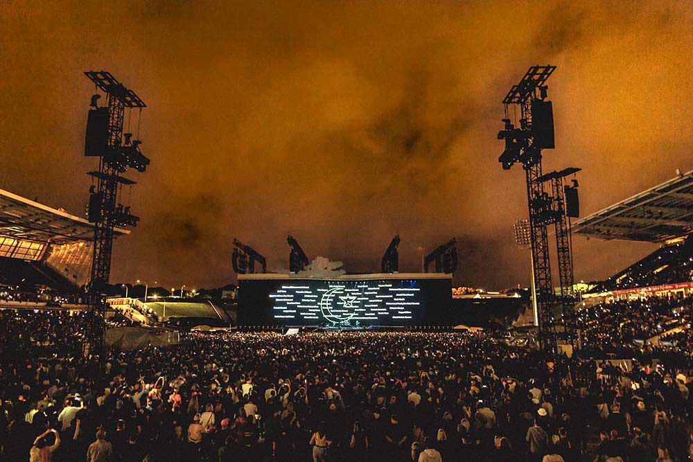 The band has been a Clair Global client for 36 years so it was no surprise to see a Cohesion CO-12 system consisting of four sets of line arrays suspended from cantilever cranes and trimmed at 30 metres, carefully positioned so as not to obstruct the giant screen.
