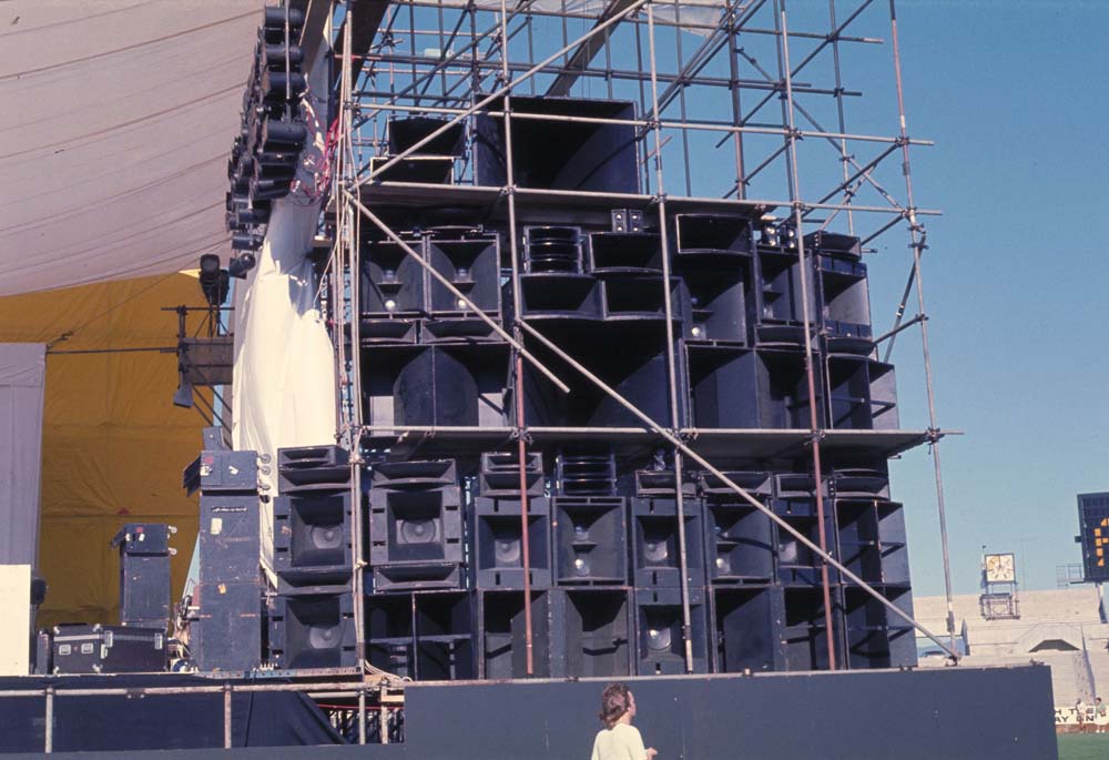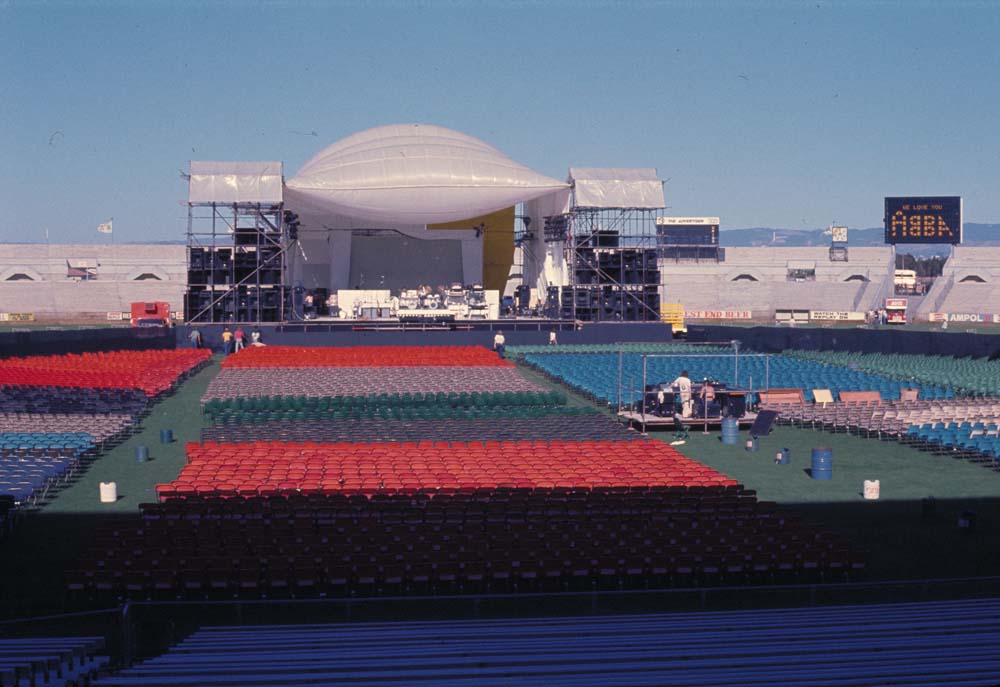 “…a big speaker bank either side of the stage and then they had another one half way up the lawn area. I think possibly because of the use of strings and synthesizers and just the band themselves playing and the whole lot was blended so well, it was just unbelievable, the sound was perfect. And of course you could hear every word that ABBA sang which was what the kids were there for anyway.
