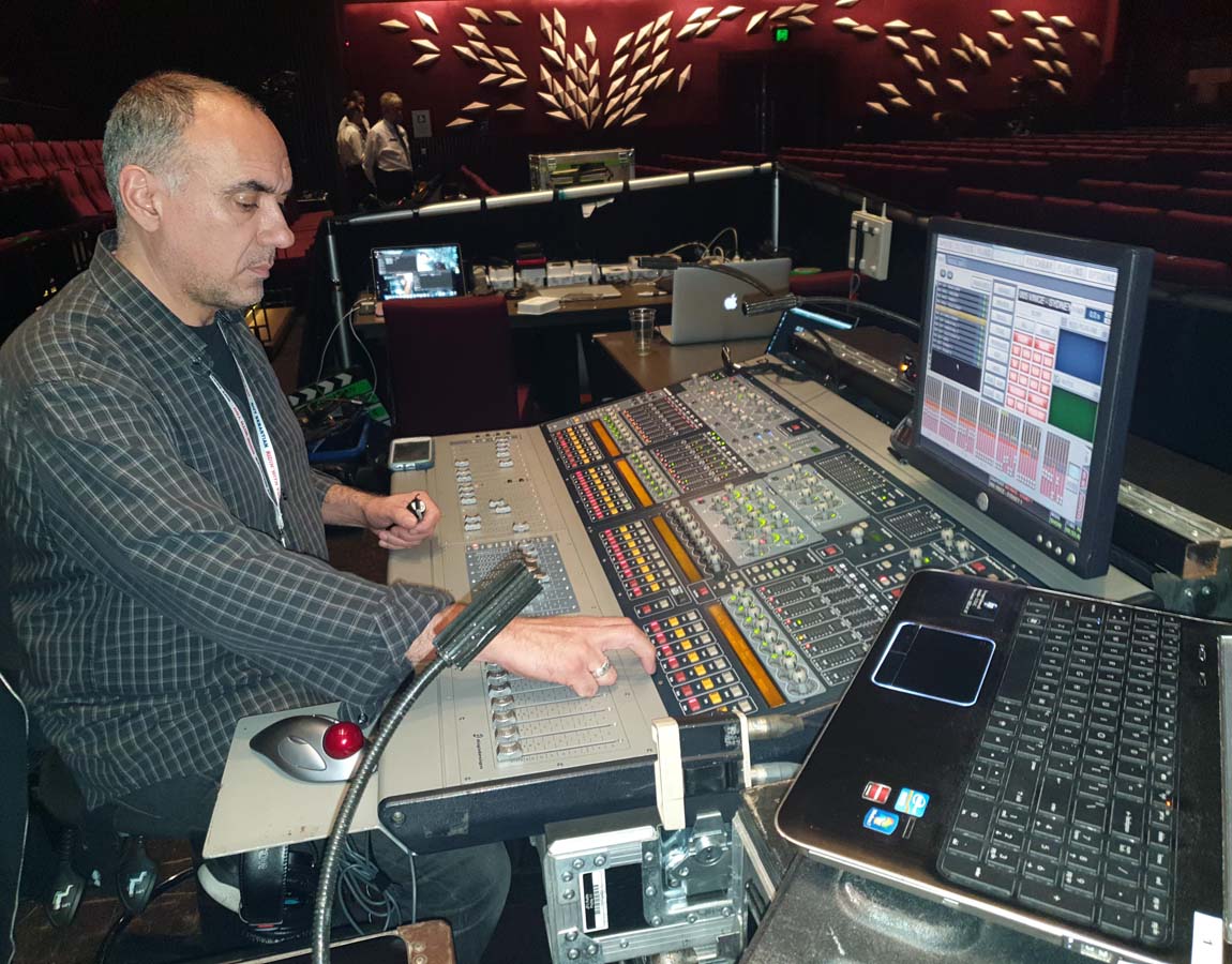 George Gorga the Audio Director for the NRL mixes the music element for broadcast and pre show element for the stadium and his console of choice an AVID Venue Profile.