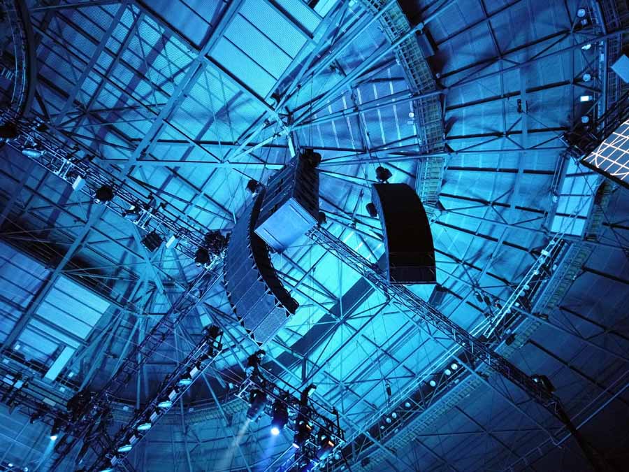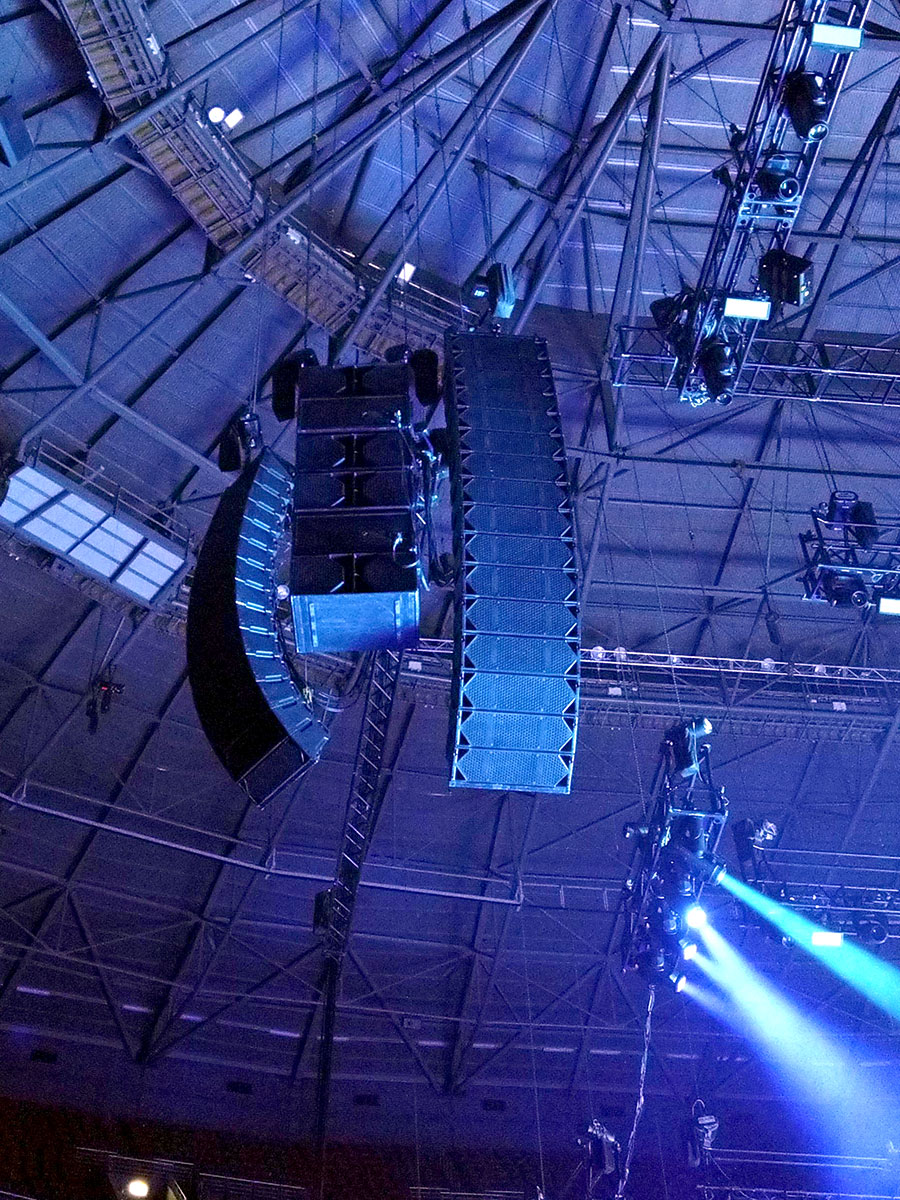 The venue here is very steep so we’ve had to fly quite high in order to cover the very top seats,” said Davide. “We spend a lot of time tuning, making sure that there is a good balance between delays and gain structure in order to get the image back to where Bryan is. Also, Bryan is not a powerful singer so the more coverage there is, the better it is to control his vocal.