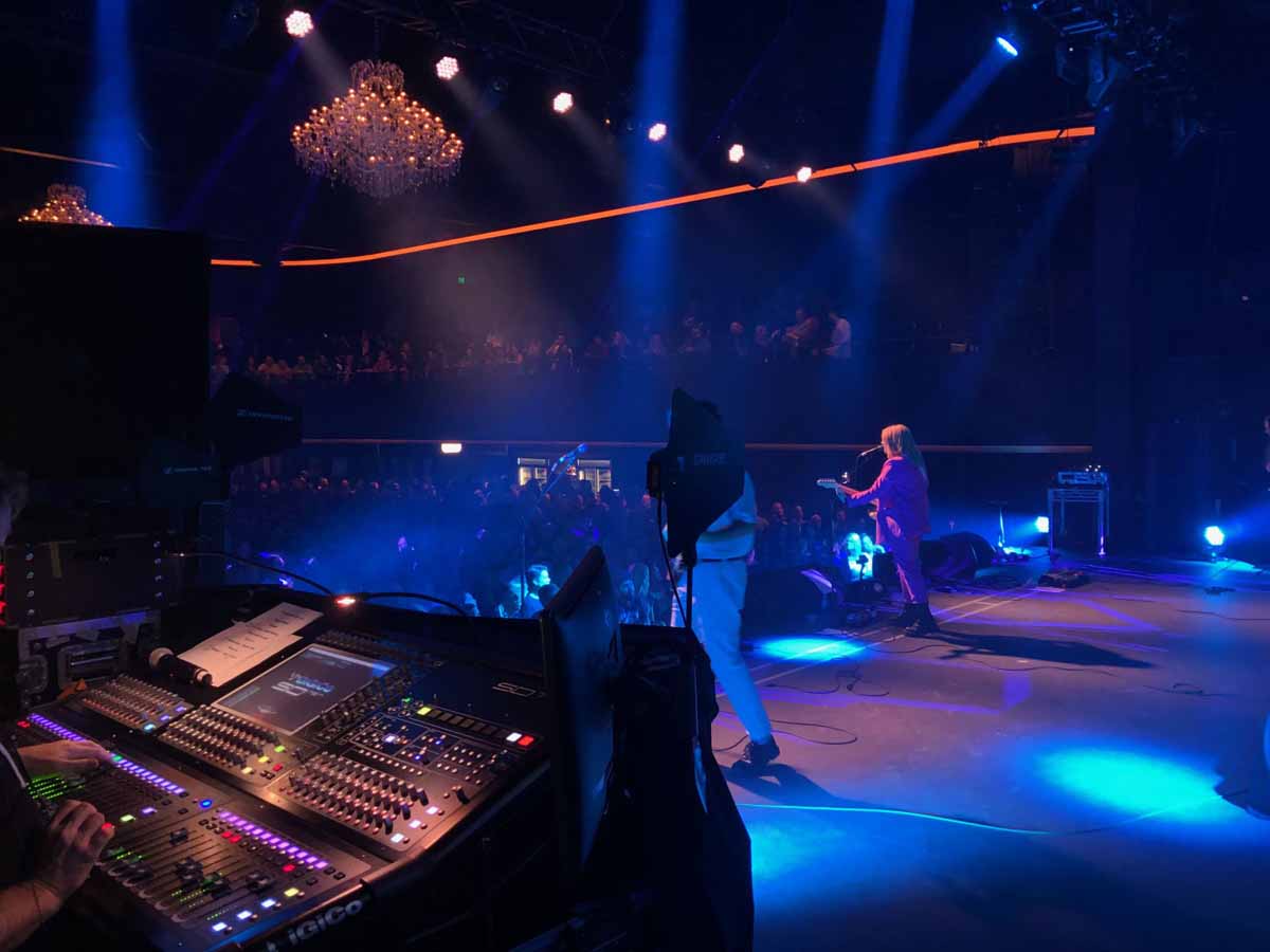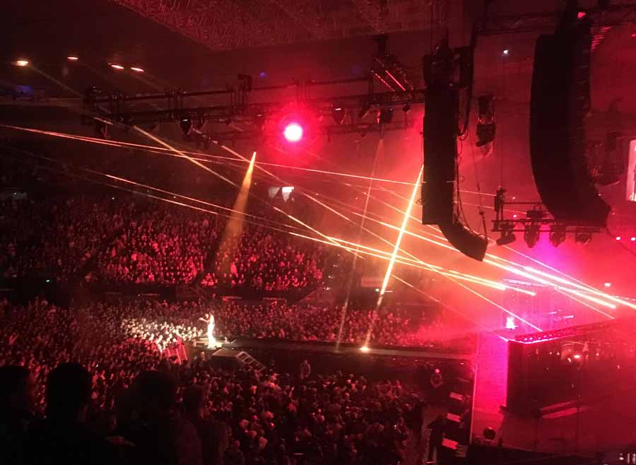FOH engineer James ‘Oysters’ Kilpatrick was given a short and to the point brief by the artist’s team: perfect high quality audio delivered to every single seat and with that they sent him a Dropbox link to pre-show music, announcements and a pre-programmed cue list!