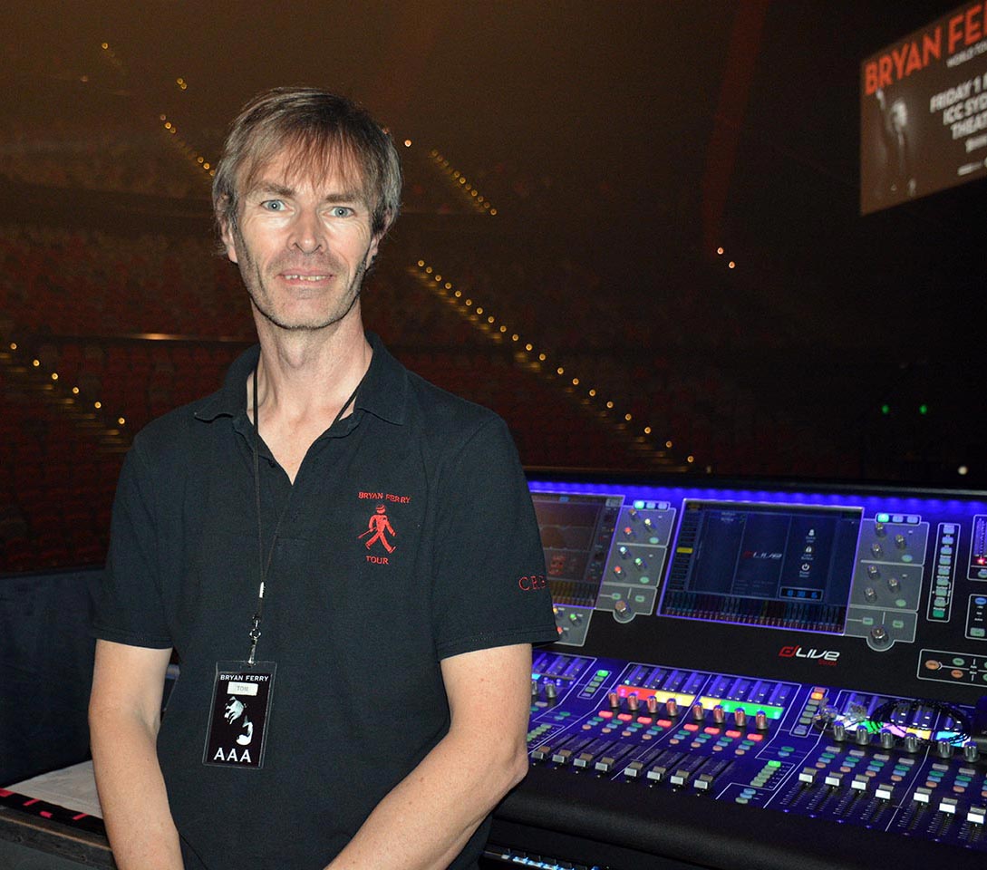 Mixing monitors for Bryan is a very parallel equation to Davide – precision, accuracy, coping with what he’s hearing and wanting to hear,” said Tom. “And also like the FOH mix, you’re riding every solo and readjusting all the time. The band basically get my attention during the soundcheck and I’m pretty much pinned on Bryan through the show. It’s mix, mix, mix and without snapshots I’d be lost on this one. The musicians play different instruments so there’s a fair bit of rotation there. Arrangements are everything with Bryan and I have to mix monitors as if I’m mixing out front, you can’t leave it alone for a minute. With the vocal you’re riding that fader up and down, pulling it back every time he’s not singing – so the finger grips that fader all the time.