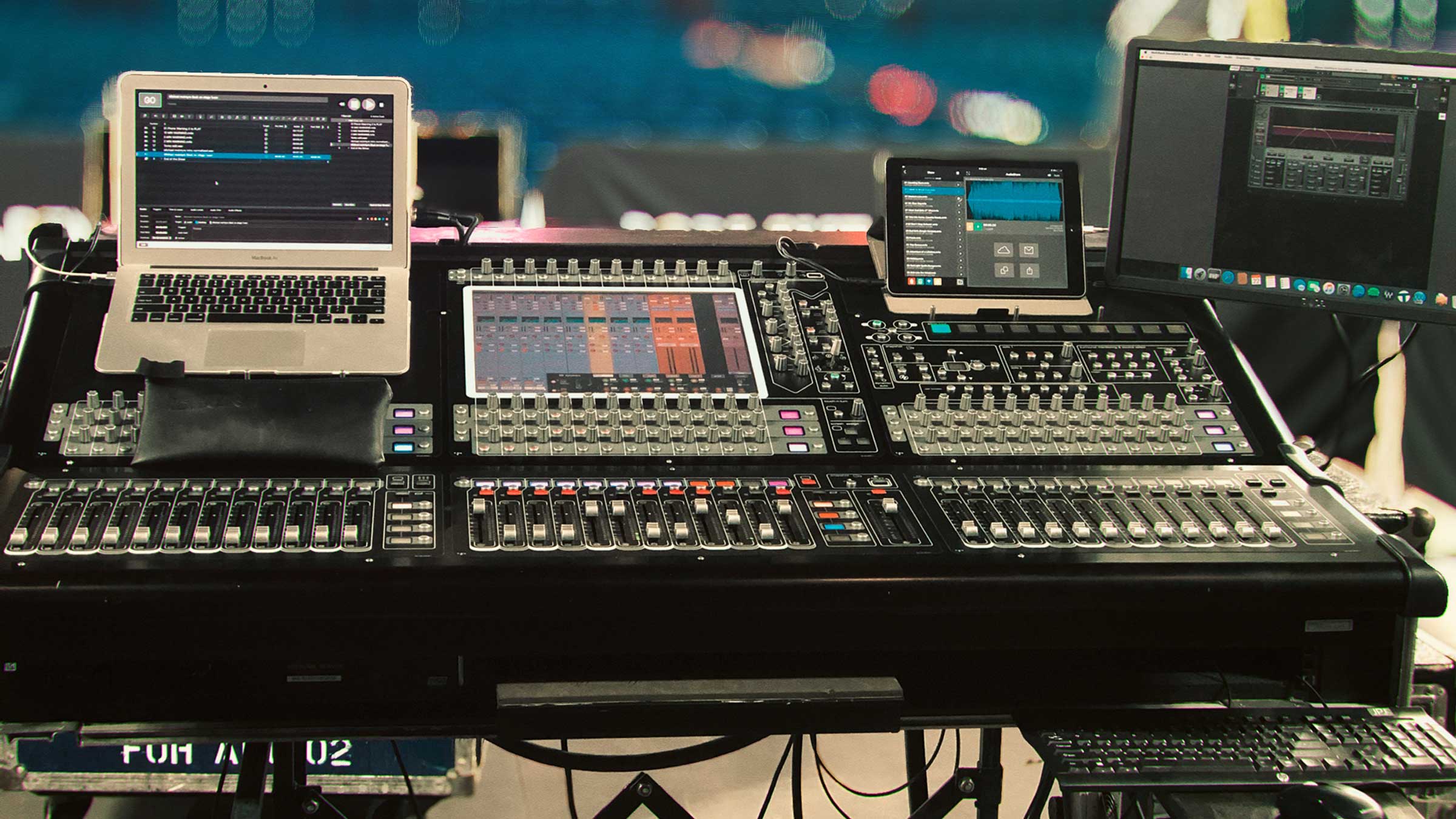 Also at FOH is a QLab playback rack for sound effects.