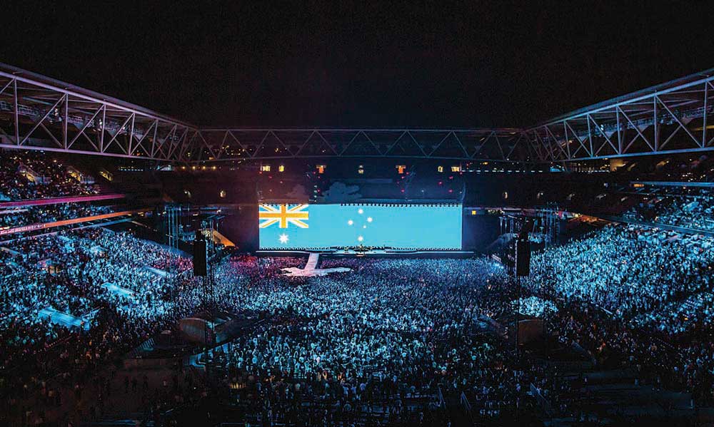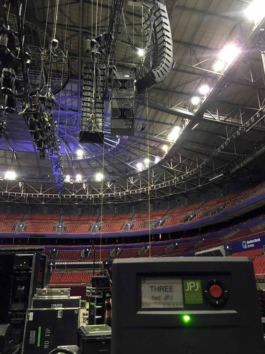 For Brisbane, JPJ installed an L-Acoustics KUDO ground PA system to supplement the in house PA. Stage monitors were L-Acoustics 115xt HiQ’s, all radio mics for the show are from the Shure Axient series and IEMs used were Shure PSM 1000s. There was a mixture of Shure and Sennheiser microphones depending on the band’s spec.