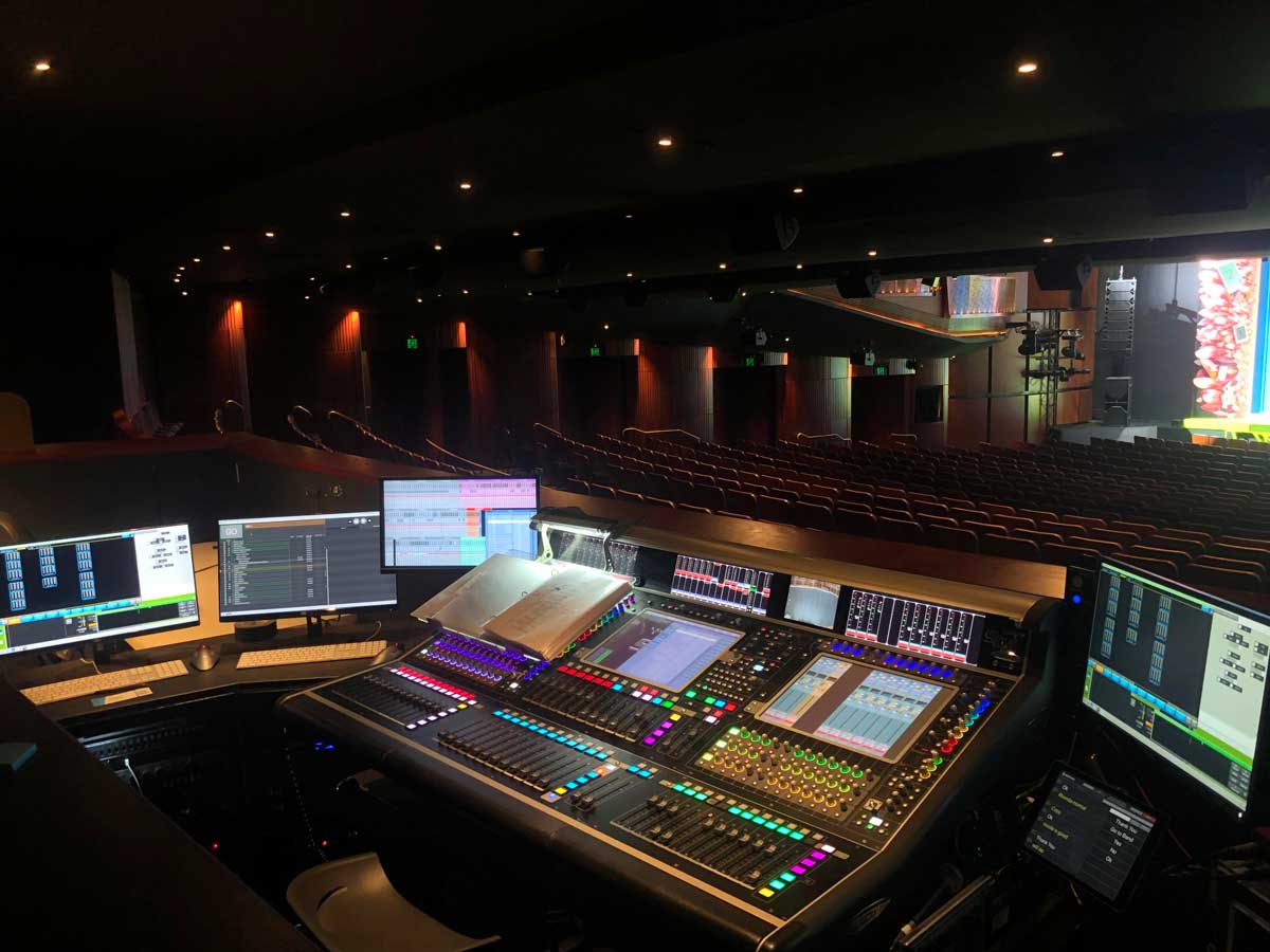 A TiMax Tracker is deployed to make vocal mics precisely follow the movement of actors. “Each performer wears a tag that the computer tracks so the TiMax system can pan their voice around the sound system so it sounds more like their amplified voice is coming from where the actual performer is,” Gareth elaborated.