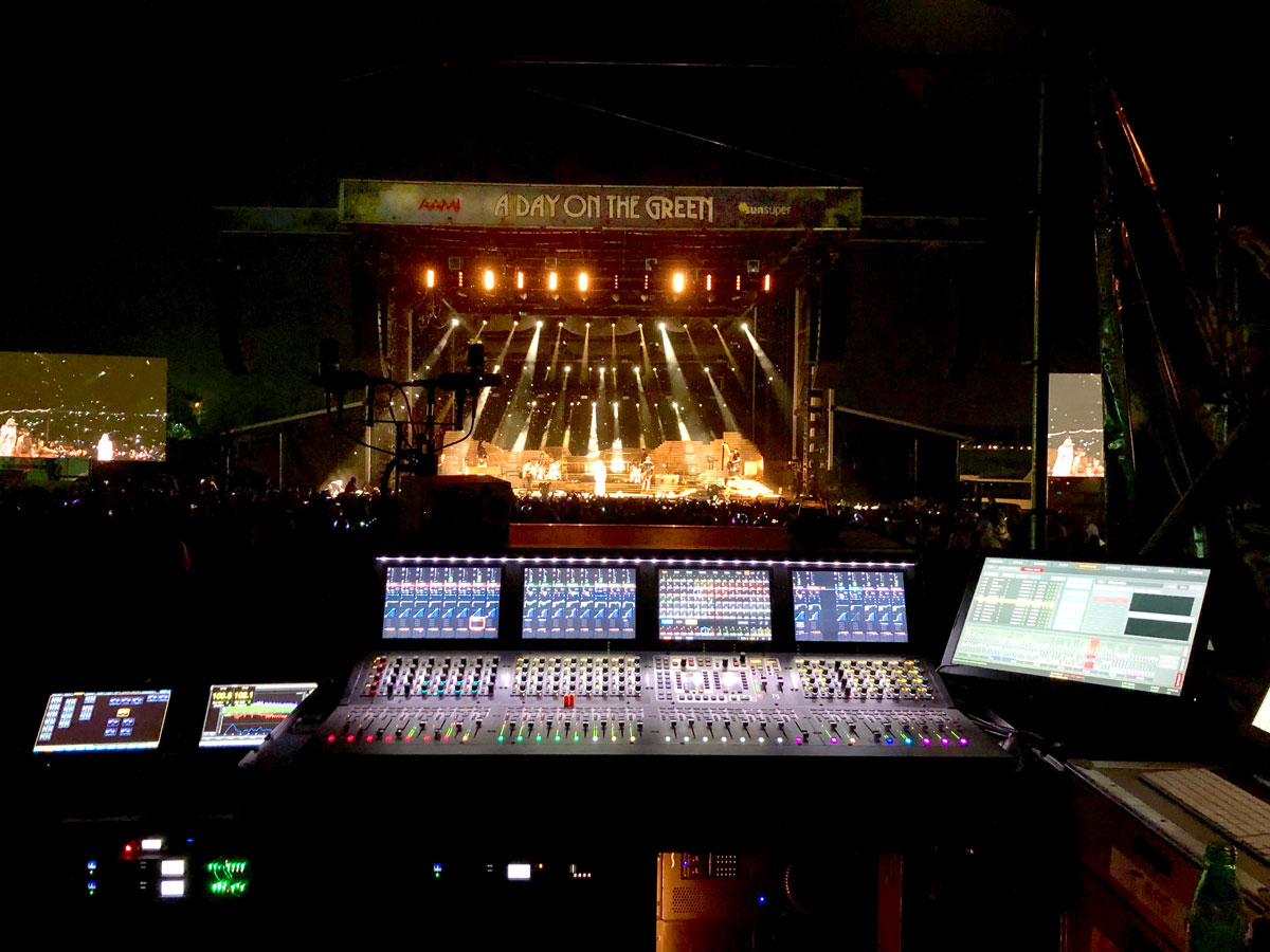 Outboard gear included a Bricasti M7 for Adam’s main effect reverb with Vince using Midi triggers from the snapshots to change patches in the Bricasti. A Tube-Tech CL 2A is used for a compressor on Adam’s vocal and spare vocal, whilst a Neve 5045 primary source enhancer saves Vince a few headaches as most of the show designs feature Adam in front of the PA for nearly the entire set. However in Australia the set was scaled back with a design that kept Adam behind the PA!