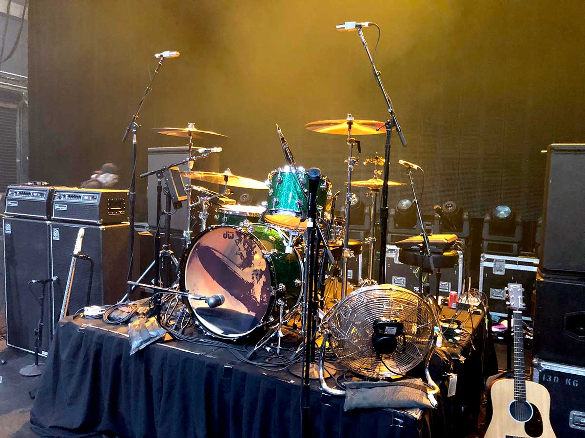 The band changed a lot of the guitars to Fractals from Royer Ribbon mics, which Vince says sound way better and sit in the mix well taking up less headroom. With seven people on stage headroom becomes a real challenge quickly.