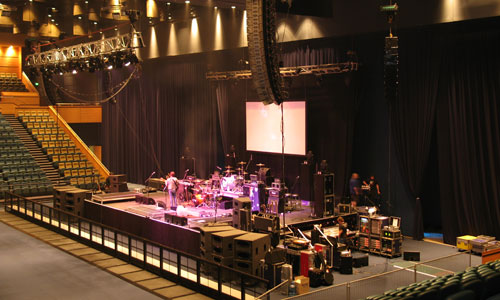 I caught the tour at the Pallais Theatre and then two days later at the Vodafone Arena. The light and vision production was essentially the same in both venues, with less speaker boxes used for the 2000 Pallais than for the 6000 seat Arena. “It scales up nicely”, said the polite Hugh Taranto, veteran of many Silverchair tours. His lighting design was clever, because there was nothing flown in the grid that needed focusing, so no one needed to climb up there. That made a huge time saver, since the house worklights didn’t need to go out, and the safety issues of not having climbing crew are obvious.