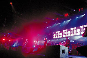 Patrick Woodroffe’s lighting design for the Stones had everything that moved, all controlled from a Hog II. Hugh Taranto’s design for Silverchair had more than enough in the way of fixtures – controlled from a Whole Hog III.