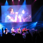 I caught the tour at the Pallais Theatre and then two days later at the Vodafone Arena. The light and vision production was essentially the same in both venues, with less speaker boxes used for the 2000 Pallais than for the 6000 seat Arena. “It scales up nicely”, said the polite Hugh Taranto, veteran of many Silverchair tours. His lighting design was clever, because there was nothing flown in the grid that needed focusing, so no one needed to climb up there. That made a huge time saver, since the house worklights didn’t need to go out, and the safety issues of not having climbing crew are obvious.